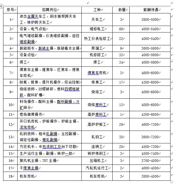 酒鋼集團榆中鋼鐵有限責任公司現(xiàn)因生產(chǎn)需要,現(xiàn)面向社會公開招聘300名崗位操作人員,現(xiàn)將有關(guān)事宜通知如下: