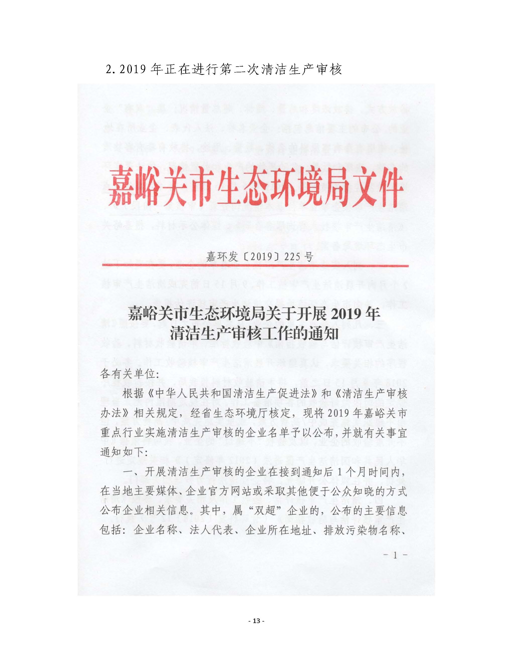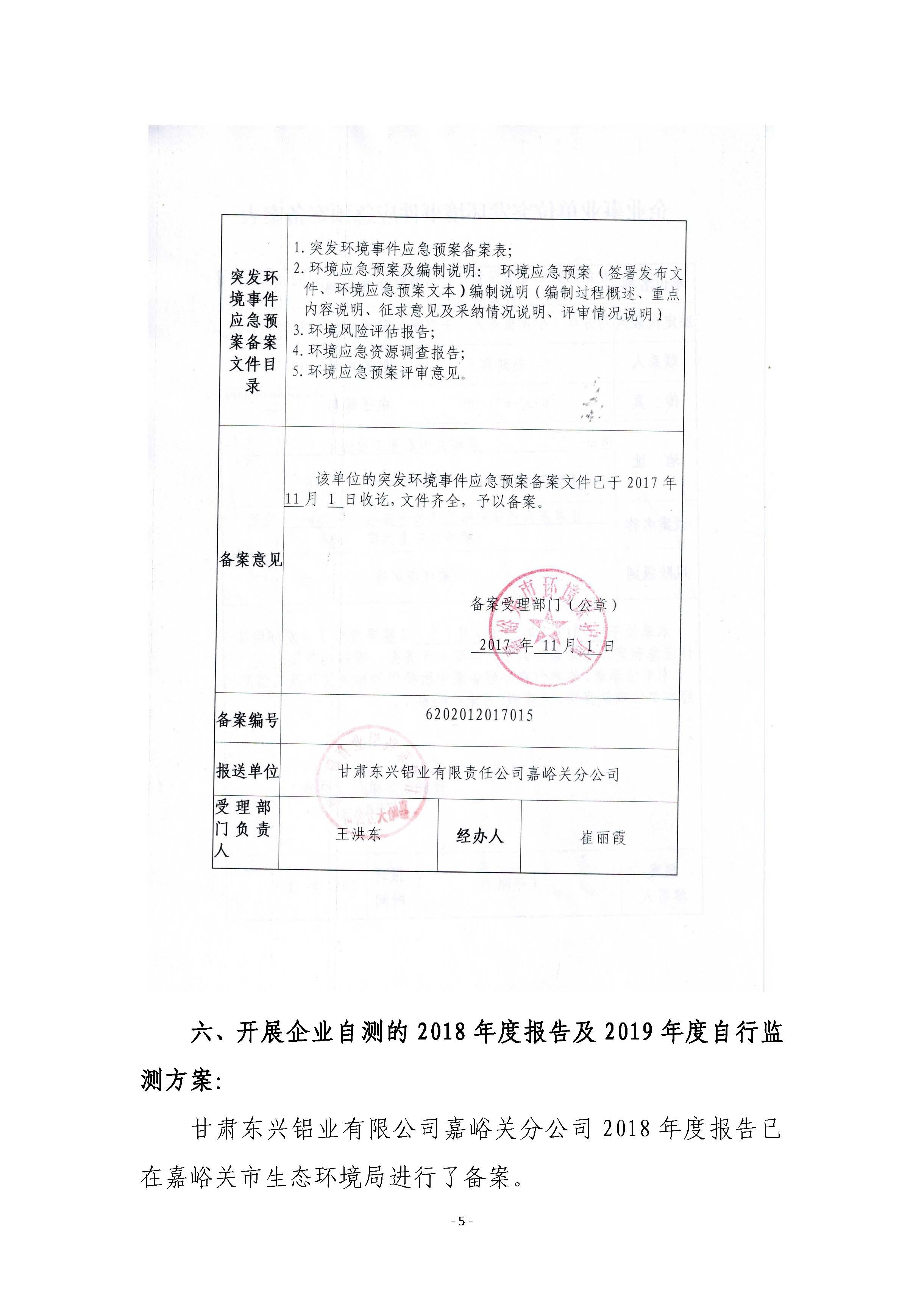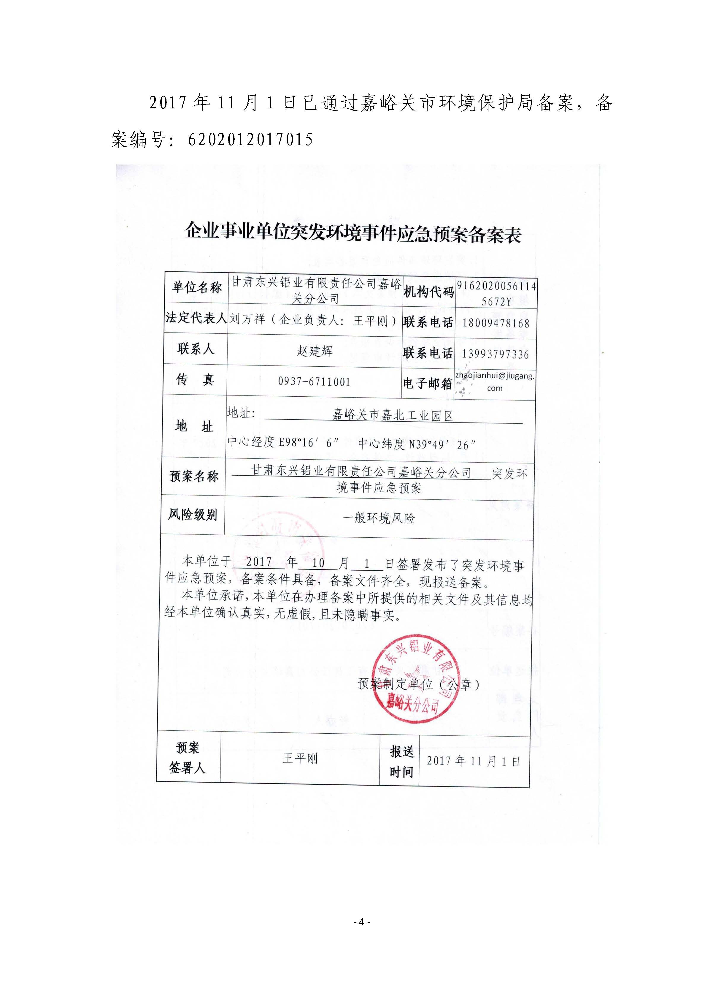 甘肅東興鋁業(yè)有限公司嘉峪關分公司2019年度環(huán)境信息公開