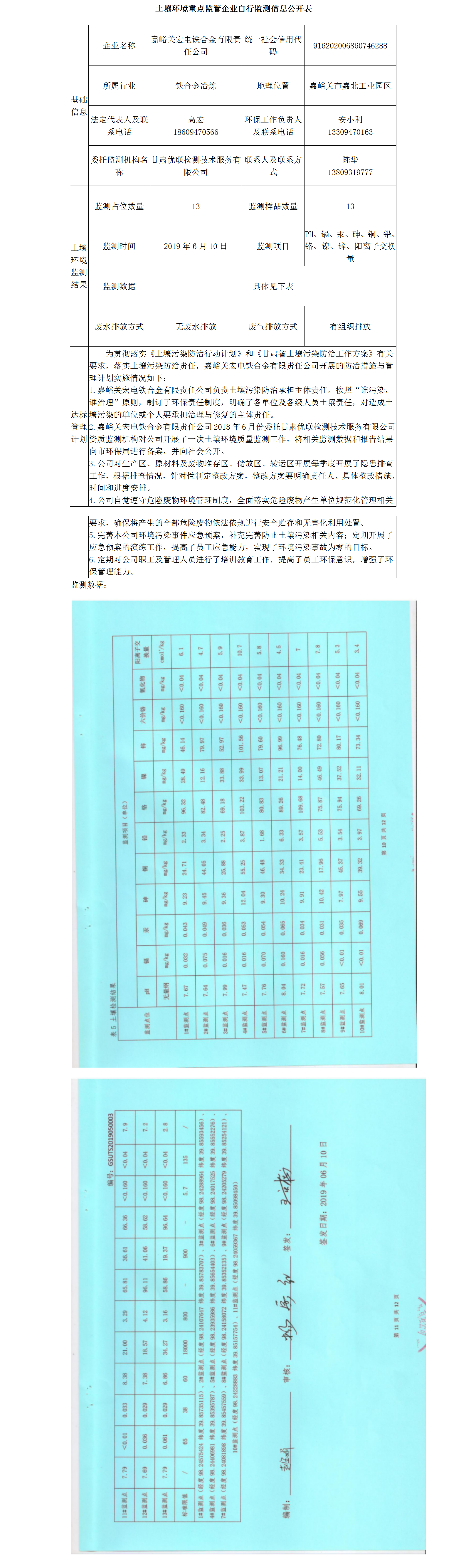 嘉峪關(guān)宏電鐵合金有限責(zé)任公司2019年土壤環(huán)境重點(diǎn)監(jiān)管企業(yè)自行監(jiān)測(cè)信息公開表