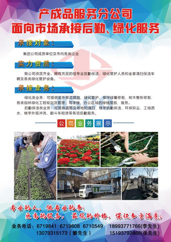 產(chǎn)成品服務(wù)分公司面向市場(chǎng)承接后勤、綠化服務(wù)