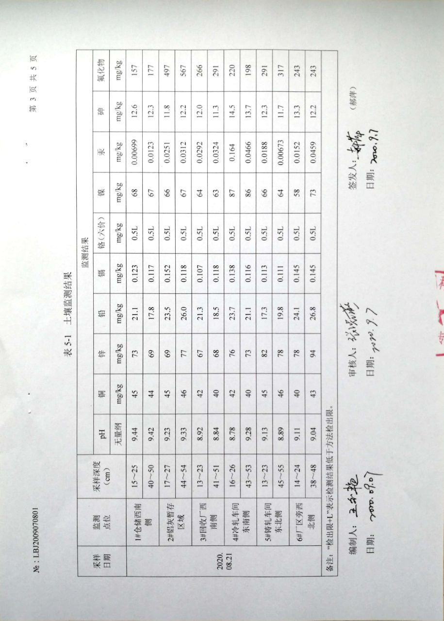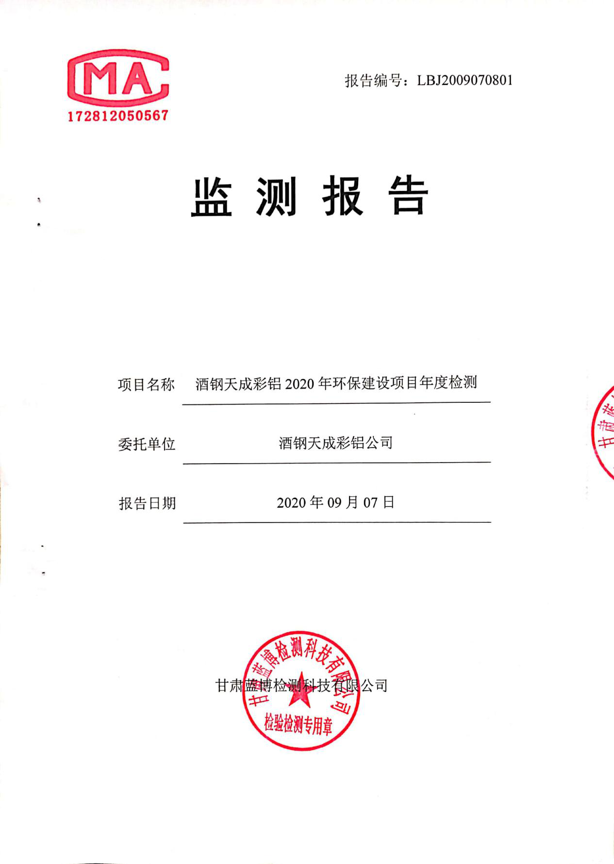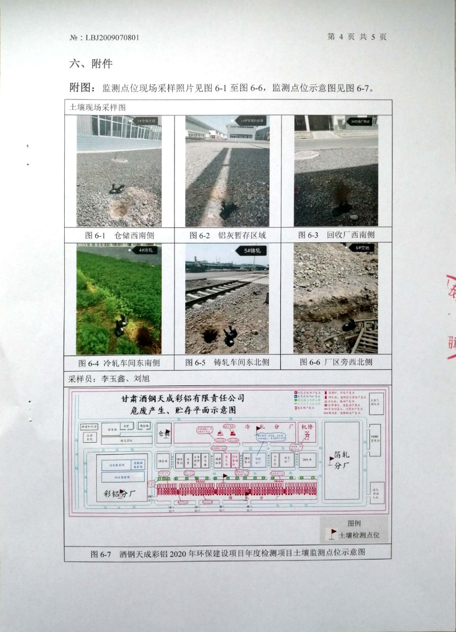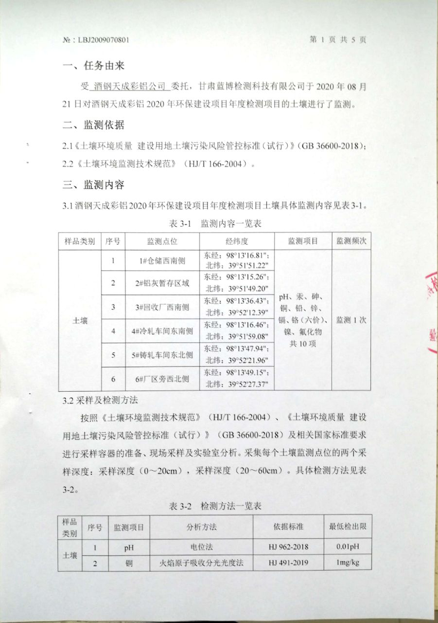 | 監(jiān)測數(shù)據(jù) | 詳見甘肅酒鋼天成彩鋁有限責(zé)任公司2020年土壤環(huán)境檢測報告,批號:LBJ2009070801 | |||