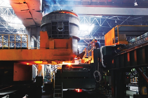 去年以來,宏興股份公司煉軋廠連鑄作業(yè)區(qū)大力開展科技攻關(guān)、崗位創(chuàng)新,在生產(chǎn)作業(yè)中實行“窄溫度、窄拉速”精細(xì)化控制,實現(xiàn)全年“零故障、零事故”目標(biāo)。圖為該作業(yè)區(qū)1號連鑄機(jī)生產(chǎn)現(xiàn)場?!⌒な缽?qiáng)攝