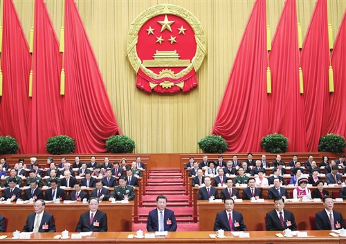 習(xí)近平、李克強、俞正聲、劉云山、王岐山、張高麗和大會主席團成員在主席臺就座。