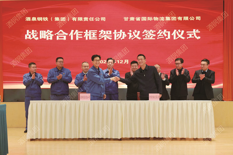 12月16日上午,甘肅國際物流集團黨委書記、董事長王月成一行來訪酒鋼。集團公司黨委書記、董事長陳得信與客人座談。甘肅國際物流集團總經(jīng)理、黨委副書記李建軍,黨委常委、副總經(jīng)理劉軍勛;酒鋼集團公司總經(jīng)理、黨委副書記程子建,黨委常委、副總經(jīng)理成東全參加座談。雙方企業(yè)簽署戰(zhàn)略合作框架協(xié)議。圖為簽約現(xiàn)場。