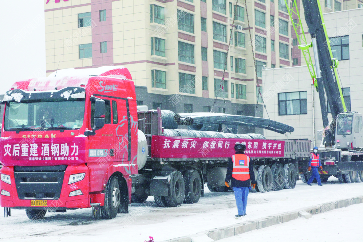 臨夏州積石山地震發(fā)生后,酒鋼集團(tuán)迅速響應(yīng)、積極行動(dòng),認(rèn)真落實(shí)甘肅省委省政府和省國(guó)資委有關(guān)決策部署,在迅速籌集資金、捐款捐物的同時(shí),持續(xù)關(guān)注災(zāi)后重建工作進(jìn)展情況。宏興股份公司銷售人員多次深入災(zāi)區(qū)現(xiàn)場(chǎng)實(shí)地調(diào)研,與災(zāi)后恢復(fù)重建指揮部深入對(duì)接,了解災(zāi)后重建時(shí)間、鋼材用量、鋼材規(guī)格等情況,以便第一時(shí)間達(dá)成鋼材供應(yīng)合作意向。隨后,臨夏州人民政府帶隊(duì)到酒鋼對(duì)接災(zāi)后重建工作,酒鋼集團(tuán)高度重視,召開專題會(huì)議研究討論具體事宜,簽訂《戰(zhàn)略合作協(xié)議》,承諾盡最大努力、以最大優(yōu)惠力度,保障災(zāi)后重建所需鋼材供應(yīng),并要求相關(guān)生產(chǎn)單位保質(zhì)保量完成鋼材產(chǎn)品生產(chǎn)任務(wù)。